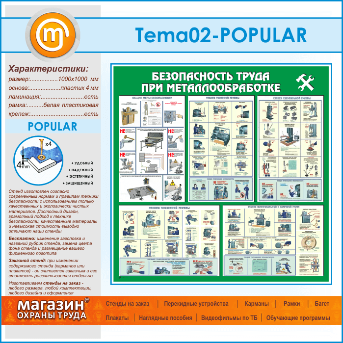 Стенд «Безопасность труда при металлообработке» (TM-02-POPULAR) в Краснодаре купить