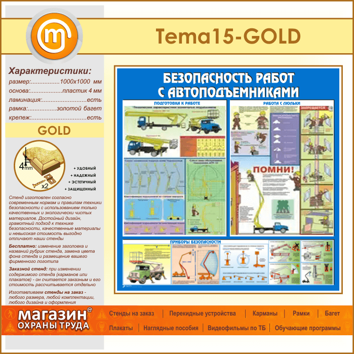 Стенд «Безопасность работ с автоподъемниками» (TM-15-GOLD) в Краснодаре купить