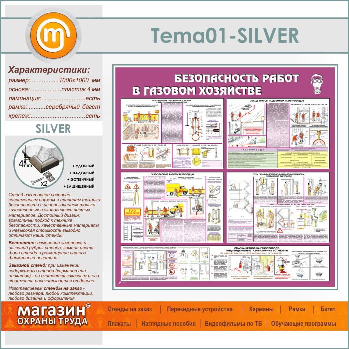 Стенд «Безопасность работ в газовом хозяйстве» (TM-01-SILVER) в Краснодаре купить