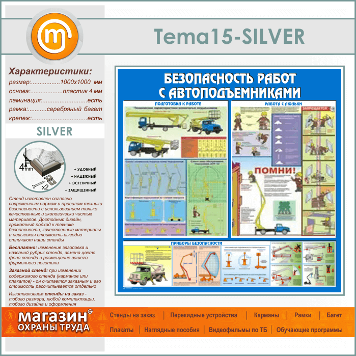 Стенд «Безопасность работ с автоподъемниками» (TM-15-SILVER) в Краснодаре купить