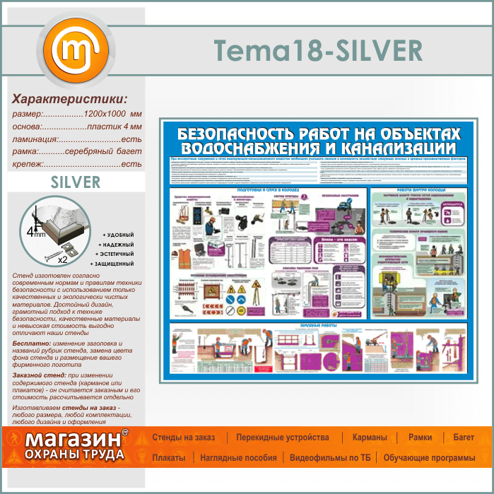 Стенд «Безопасность работ на объектах водоснабжения и канализации» (TM-18-SILVER) в Краснодаре купить
