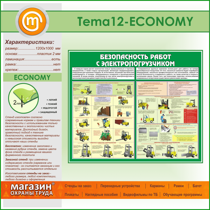 Стенд «Безопасность работ с электропогрузчиком» (TM-12-ECONOMY) в Краснодаре купить
