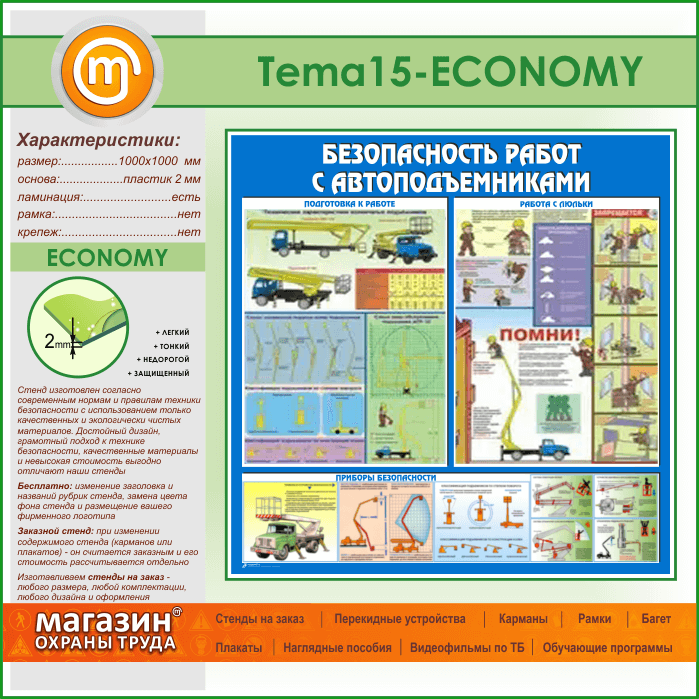 Стенд «Безопасность работ с автоподъемниками» (TM-15-ECONOMY) в Краснодаре купить