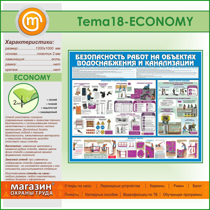 Стенд «Безопасность работ на объектах водоснабжения и канализации» (TM-18-ECONOMY) в Краснодаре купить