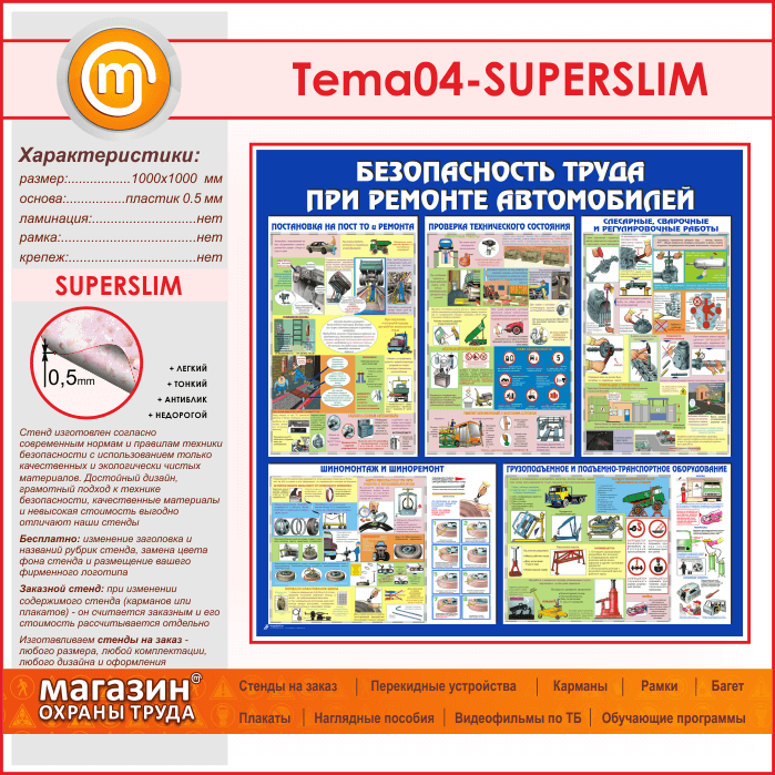 Стенд «Безопасность труда при ремонте автомобилей» (TM-04-SUPERSLIM) в Краснодаре купить