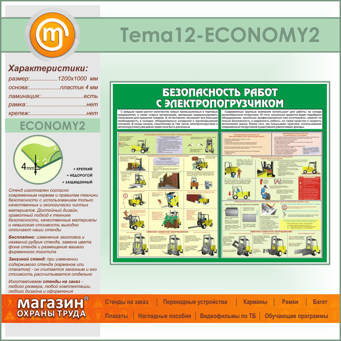 Стенд «Безопасность работ с электропогрузчиком» (TM-12-ECONOMY2) в Краснодаре купить
