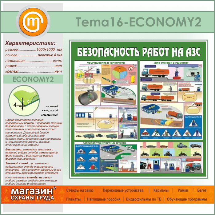 Стенд «Безопасность работ на автозаправочных станциях» (TM-16-ECONOMY2) в Краснодаре купить