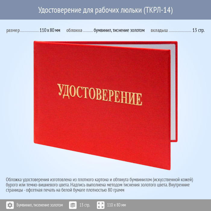 Бланк удостоверения для рабочих люльки (ТКРЛ-14) в Краснодаре купить