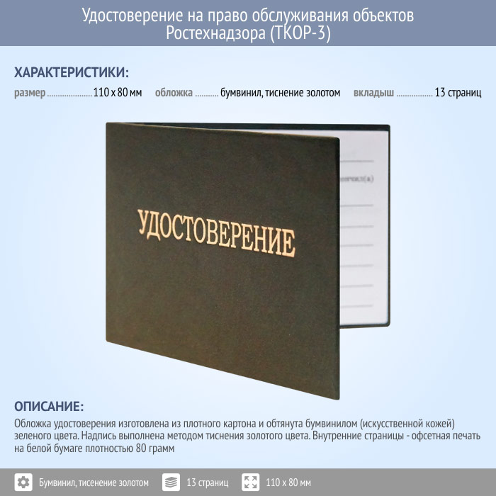 Бланк удостоверения на право обслуживания объектов Ростехнадзора (ТКОР-3) в Краснодаре купить