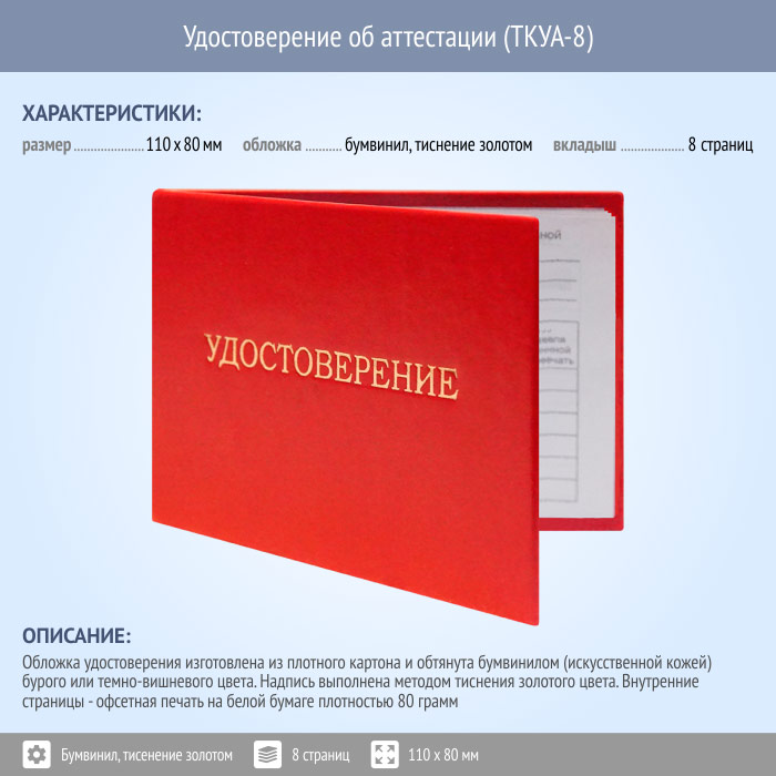 Бланк удостоверения об аттестации (ТКУА-8) в Краснодаре купить
