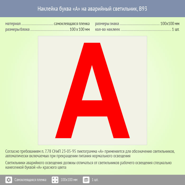 Наклейка буква «А» на аварийный светильник, B93 (пленка, 100х100 мм) в Краснодаре купить