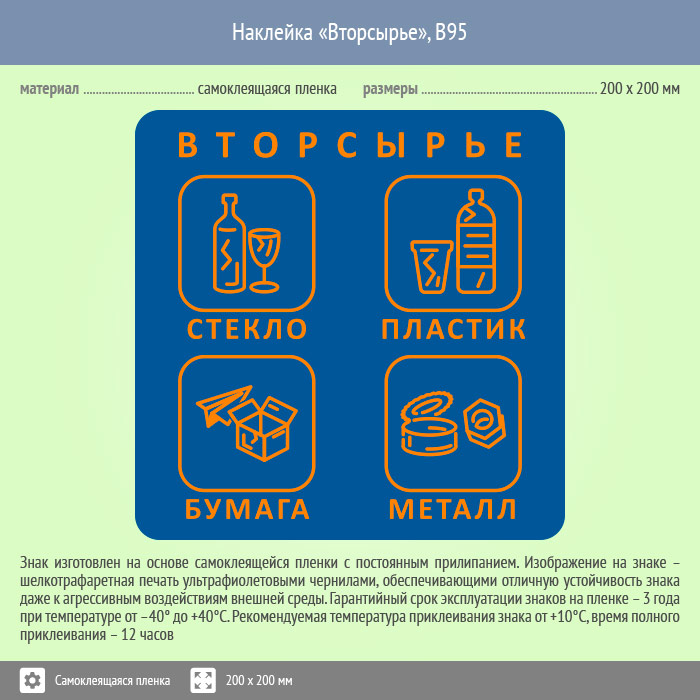 Наклейка на бак «Вторсырьё», B95 (пленка, 200х200 мм) в Краснодаре купить