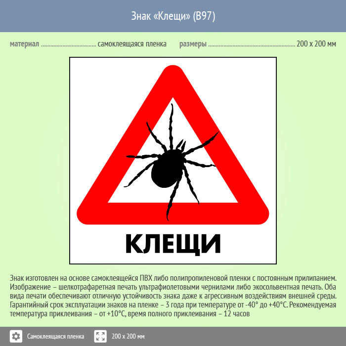 Знак «Клещи», B97 (пленка, 300х300 мм) в Краснодаре купить