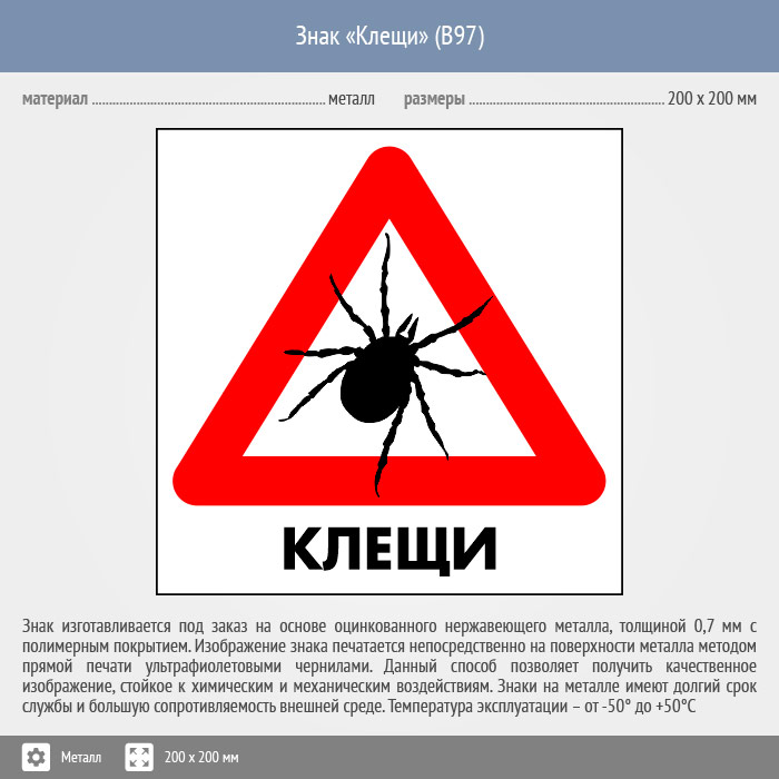 Знак «Клещи», B97 (металл, 300х300 мм) в Краснодаре купить