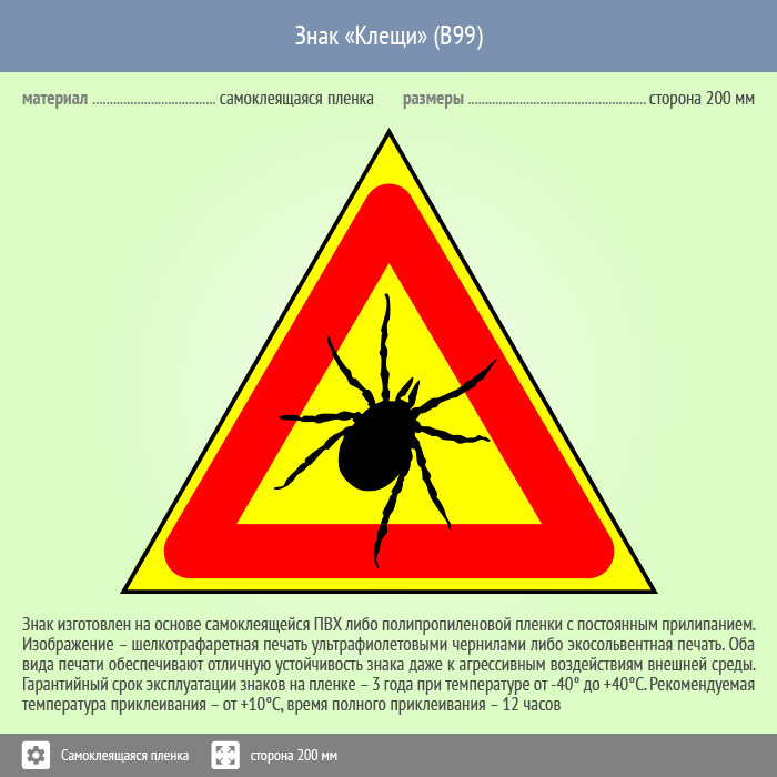 Знак «Клещи», B99 (пленка, сторона 300 мм) в Краснодаре купить