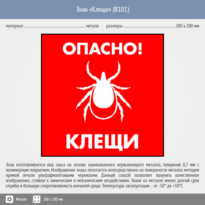 Знак «Опасно! Клещи», B101 (металл, 200х200 мм) в Краснодаре купить