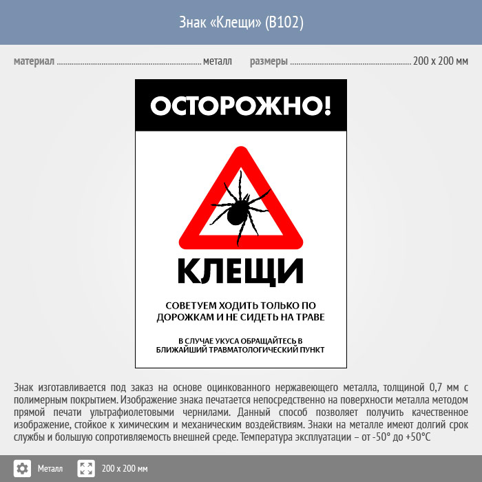 Знак «Осторожно! Клещи», B102 (металл, 400х600 мм) в Краснодаре купить