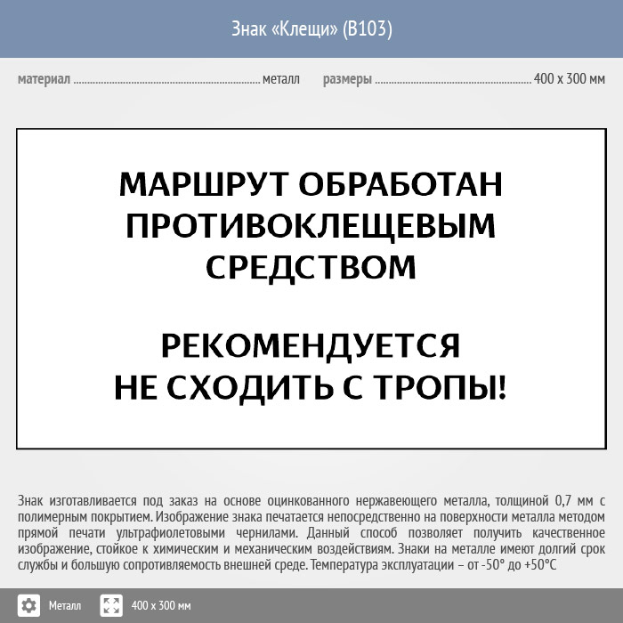Знак «Клещи», B103 (металл, 300х200 мм) в Краснодаре купить