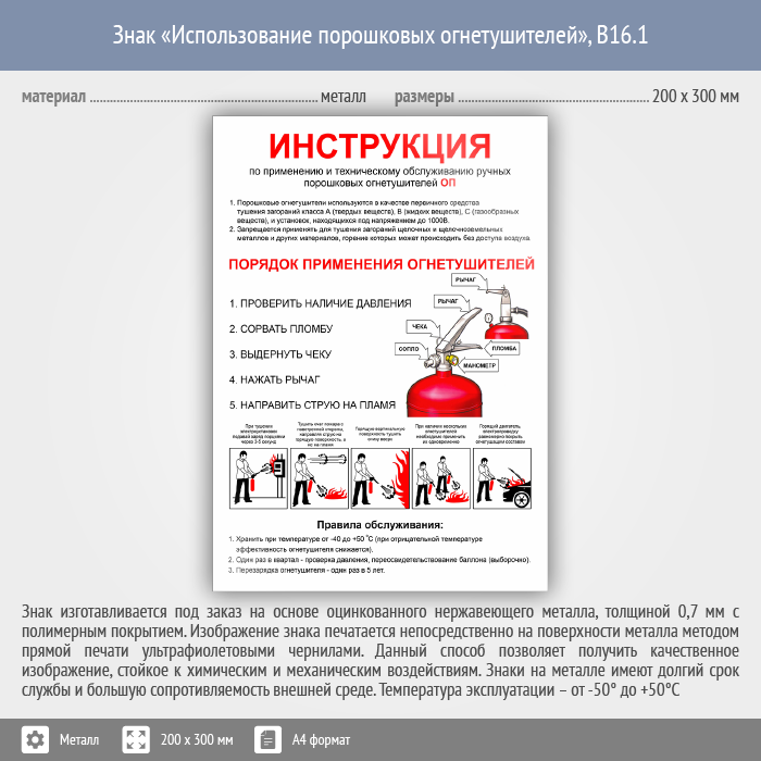 Знак «Использование порошковых огнетушителей», B16.1 (металл, 200х300 мм) в Краснодаре купить