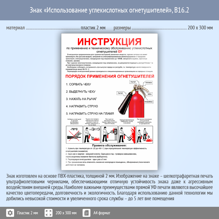 Знак «Использование углекислотных огнетушителей», B16.2 (пластик, 200х300 мм) в Краснодаре купить