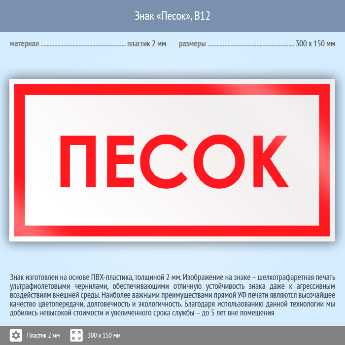 Знак «Песок», B12 (пластик, 300х150 мм) в Краснодаре купить