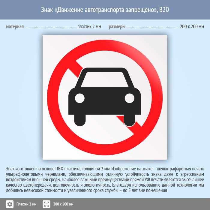 Знак «Движение автотранспорта запрещено», B20 (пластик, 200х200 мм) в Краснодаре купить