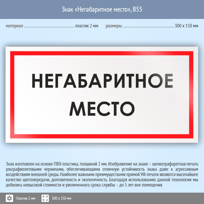 Знак «Негабаритное место», B55 (пластик, 300х150 мм) в Краснодаре купить
