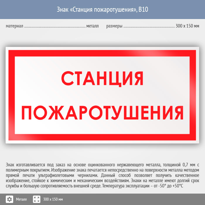 Знак «Станция пожаротушения», B10 (металл, 300х150 мм) в Краснодаре купить