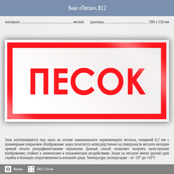 Знак «Песок», B12 (металл, 300х150 мм) в Краснодаре купить