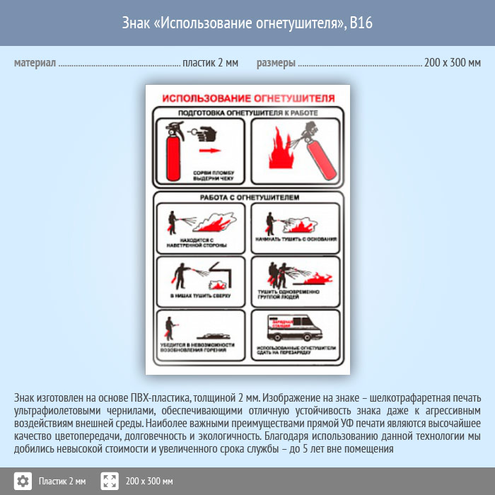 Знак «Использование огнетушителя», B16 (пластик, 200х300 мм) в Краснодаре купить