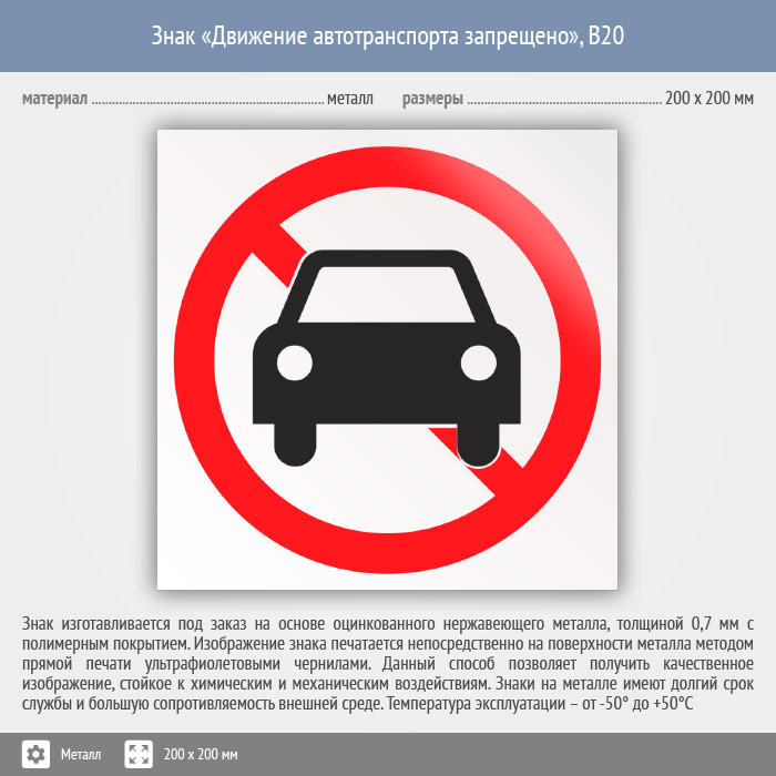 Знак «Движение автотранспорта запрещено», B20 (металл, 200х200 мм) в Краснодаре купить