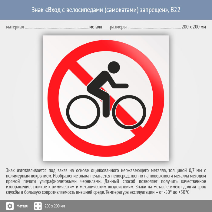 Знак «Вход с велосипедами (самокатами) запрещен», B22 (металл, 200х200 мм) в Краснодаре купить