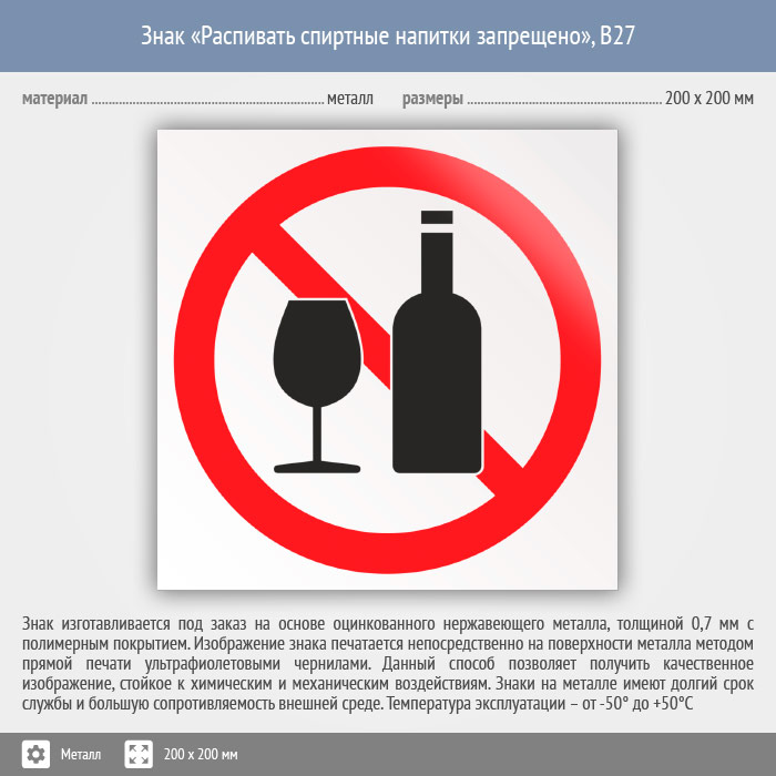Знак «Распивать спиртные напитки запрещено», B27 (металл, 200х200 мм) в Краснодаре купить