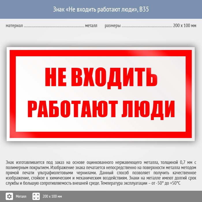 Знак «Не входить работают люди», B35 (металл, 200х100 мм) в Краснодаре купить