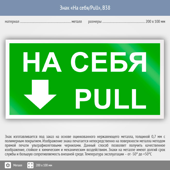 Знак «На себя/Pull», B38 (металл, 200х100 мм) в Краснодаре купить