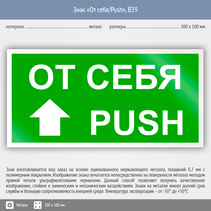 Знак «От себя/Push», B39 (металл, 200х100 мм) в Краснодаре купить