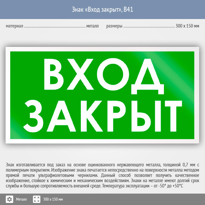Знак «Вход закрыт», B41 (металл, 300х150 мм) в Краснодаре купить