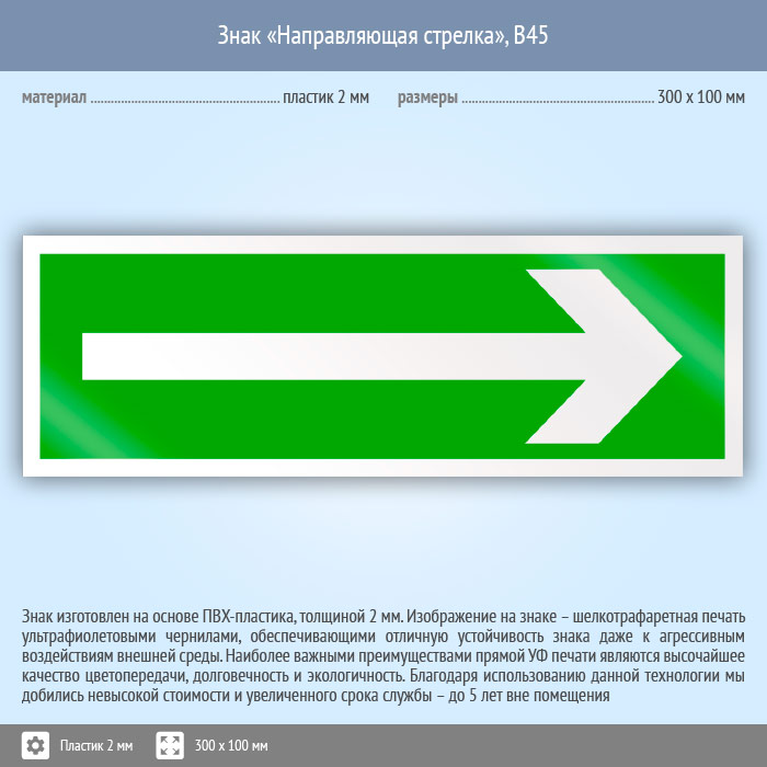 Знак «Направляющая стрелка», B45 (пластик, 300х100 мм) в Краснодаре купить