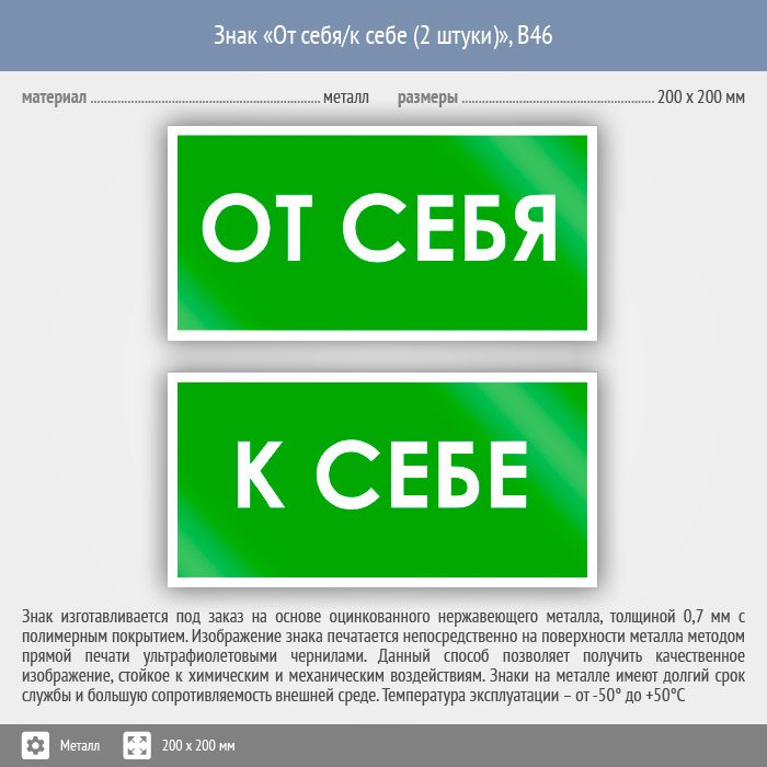Знак «От себя/к себе», B46 (2 штуки, металл, 200х100 мм) в Краснодаре купить