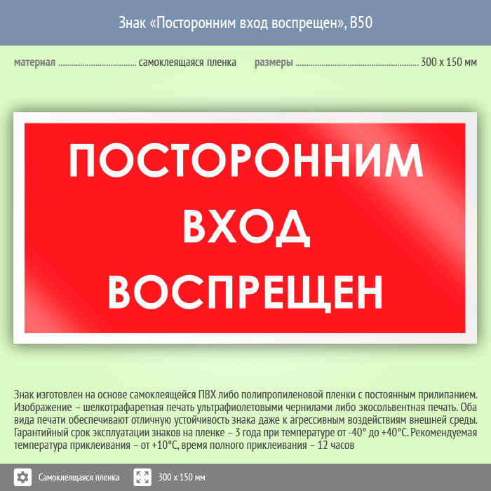 Знак «Посторонним вход воспрещен», B50 (пленка, 300х150 мм) в Краснодаре купить