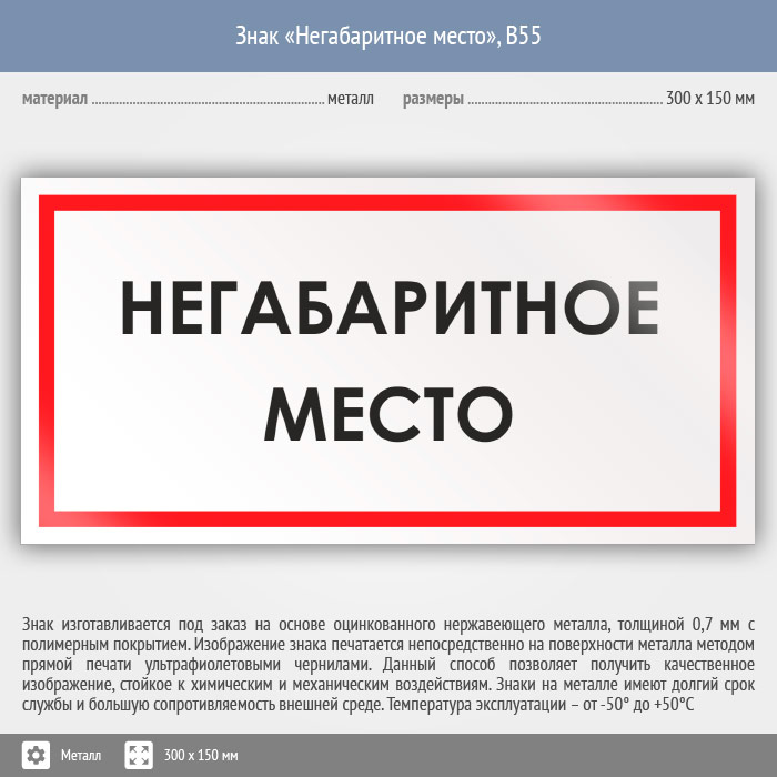 Знак «Негабаритное место», B55 (металл, 300х150 мм) в Краснодаре купить