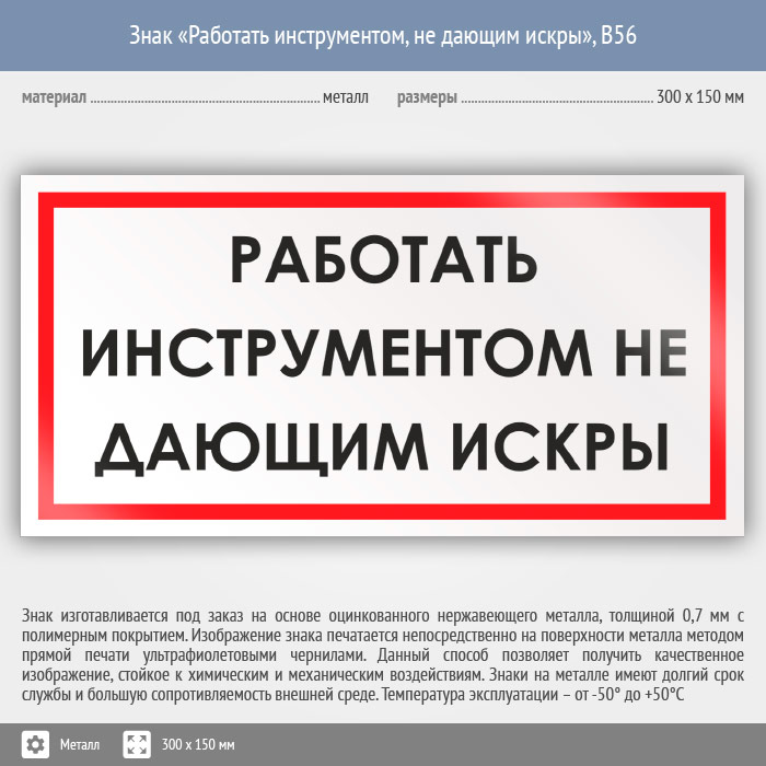 Знак «Работать инструментом, не дающим искры», B56 (металл, 300х150 мм) в Краснодаре купить