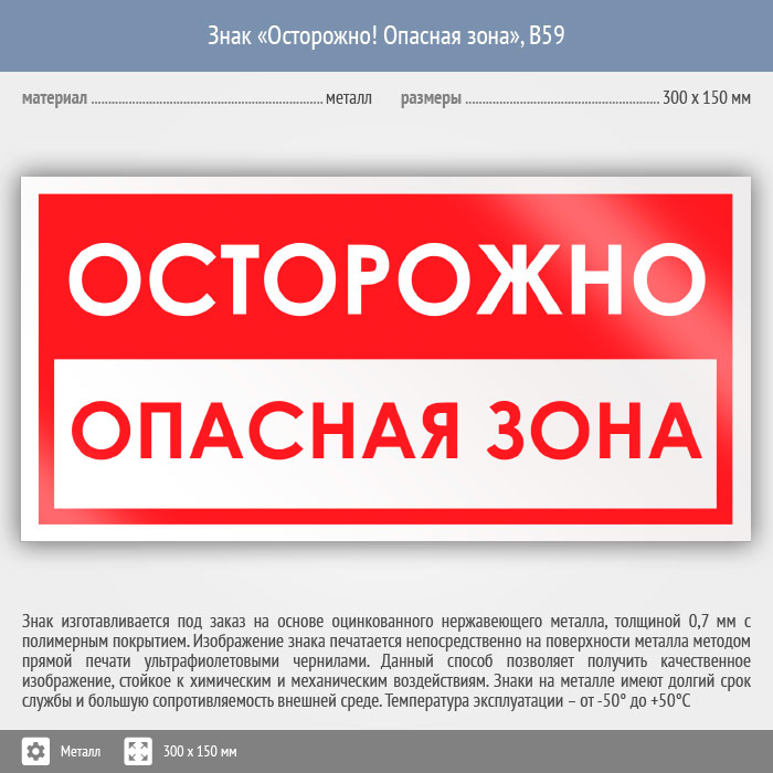 Знак «Осторожно! Опасная зона», B59 (металл, 300х150 мм) в Краснодаре купить