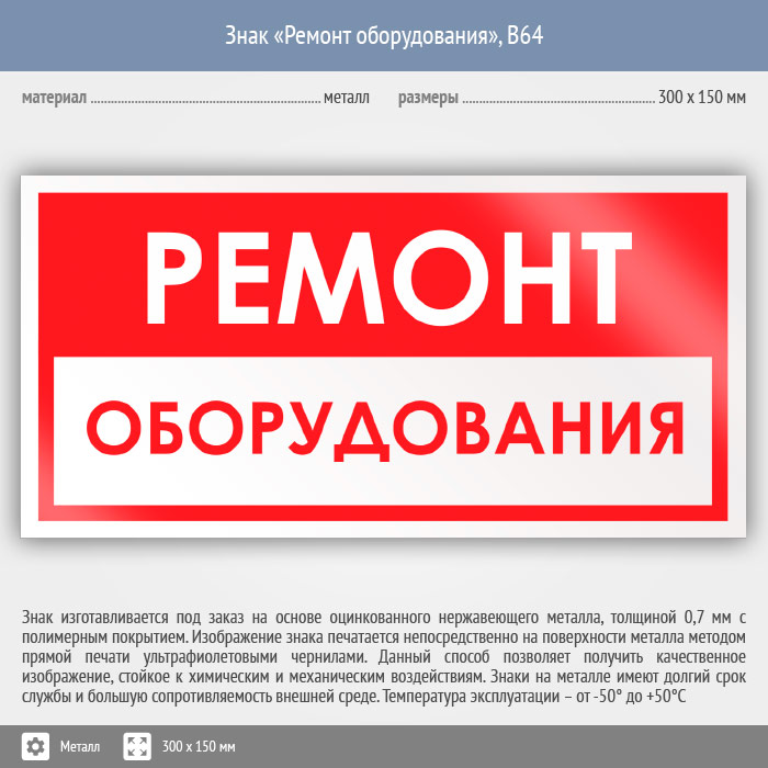 Знак «Ремонт оборудования», B64 (металл, 300х150 мм) в Краснодаре купить