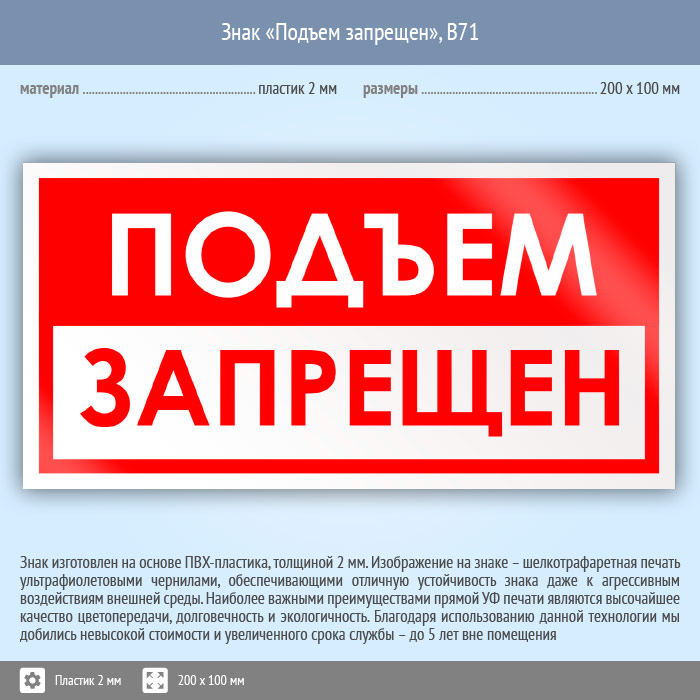 Знак «Подъем запрещен», B71 (пластик, 200х100 мм) в Краснодаре купить