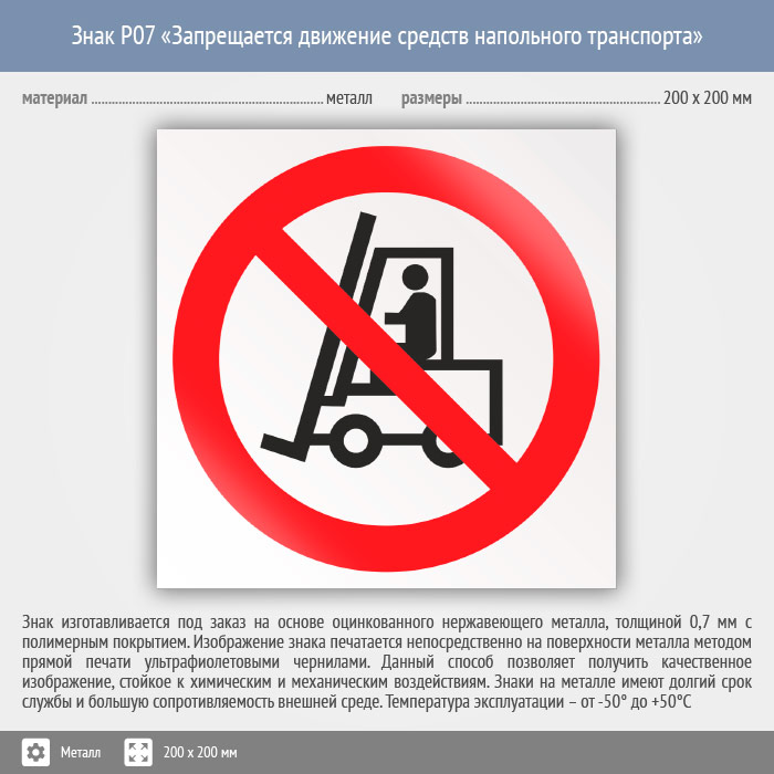 Знак P07 «Запрещается движение средств напольного транспорта» (металл, 200х200 мм) в Краснодаре купить