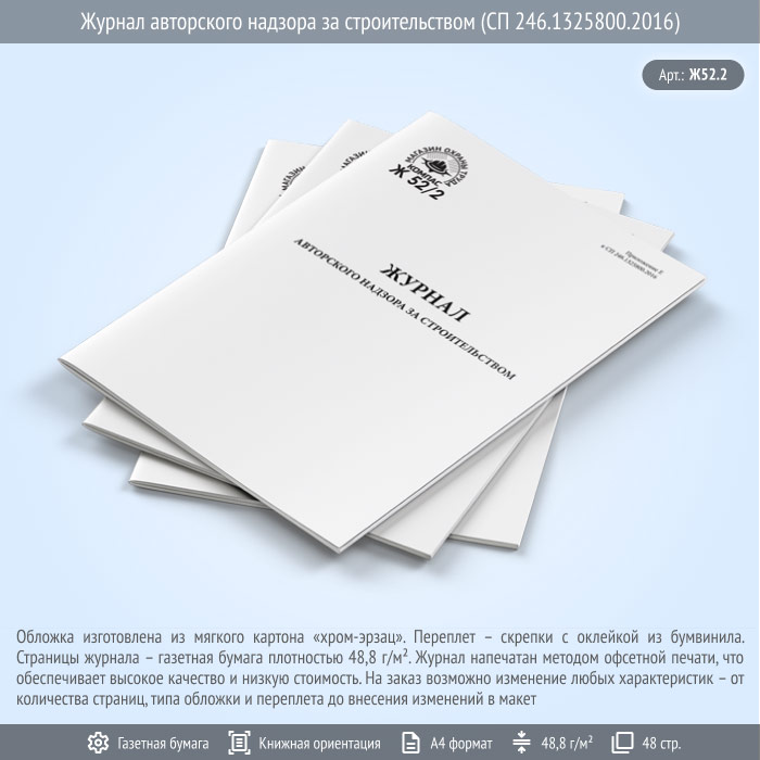 Журнал авторского надзора за строительством предназначен для ведения учета проверок соответствия строительных и монтажных работ проектной документации и требованиям действующих нормативных документов. Форма журнала применяется при осуществлении авторского надзора на объектах строительства зданий и сооружений.