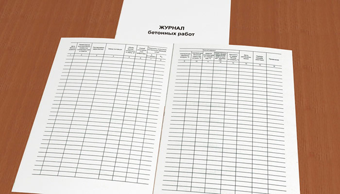 Журнал бетонных работ является одним из основных документов, ведемых на строительном объекте при выполнении работ по бетонированию конструкций. В журнале фиксируются сведения о бетонируемой части сооружения и конструктивных элементах, характеристиках бетонной смеси, поставщике, объеме уложенного бетона, а также данные контроля качества и результаты испытаний контрольных образцов.