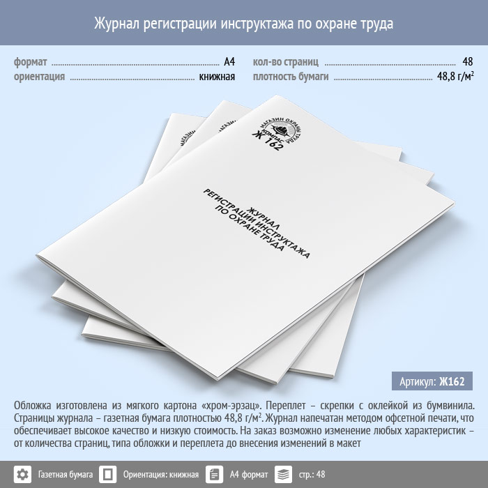 Журнал регистрации инструктажа по охране труда является обязательным учетным документом на любом предприятии, в организации или учреждении. Журнал предназначен для фиксации факта проведения вводного инструктажа по охране труда с вновь принимаемыми работниками, а также других видов инструктажа (первичного, повторного, внепланового) в соответствии с требованиями Правил обучения по охране труда и проверки знания требований охраны труда.