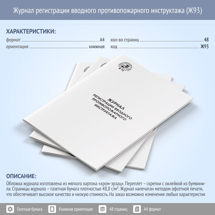 Журнал регистрации вводного противопожарного инструктажа является обязательным учетным документом на любом предприятии, в организации или учреждении. Журнал предназначен для фиксации факта проведения вводного противопожарного инструктажа с новыми сотрудниками, целью которого является доведение основных правил и требований пожарной безопасности, изучение средств защиты и порядка действий при пожаре. Допуск к работе осуществляется только после получения исчерпывающих знаний пожарной безопасности и проверки этих знаний.